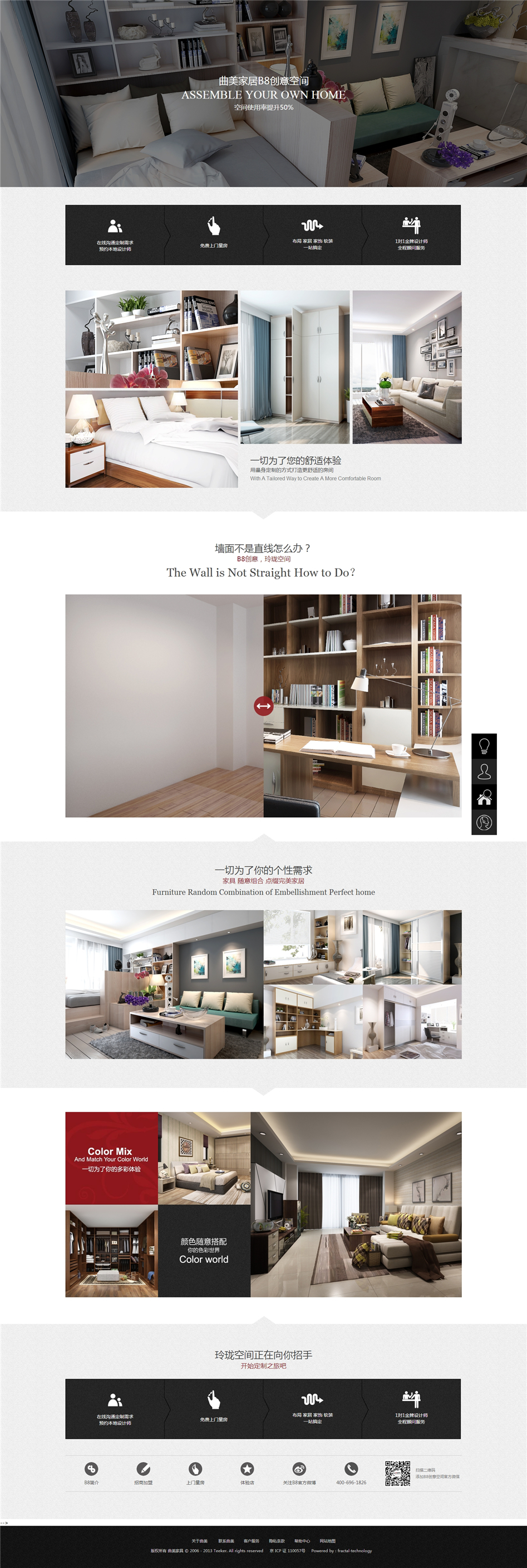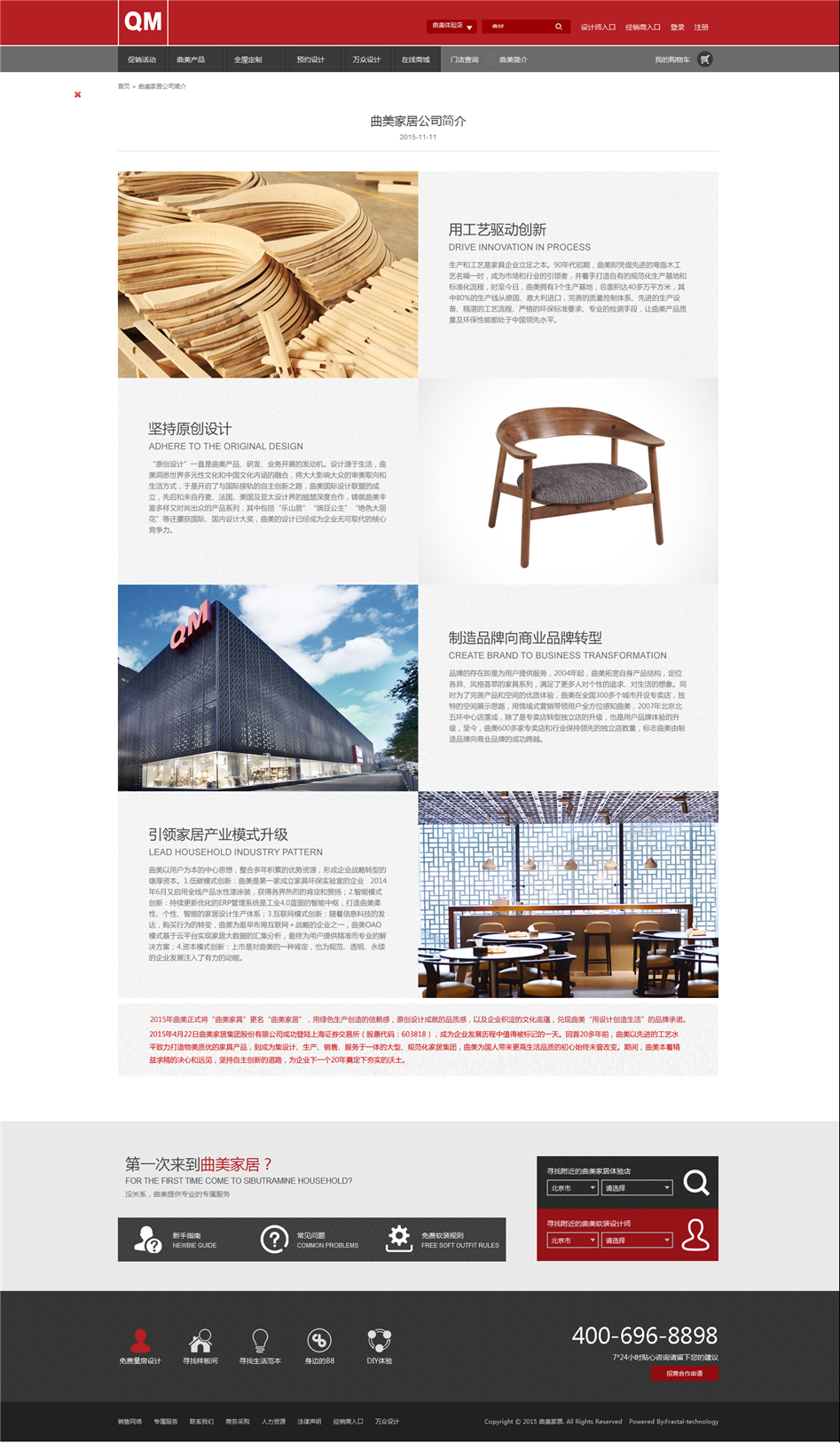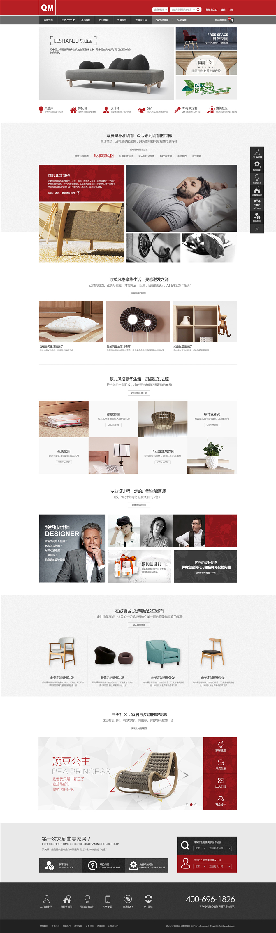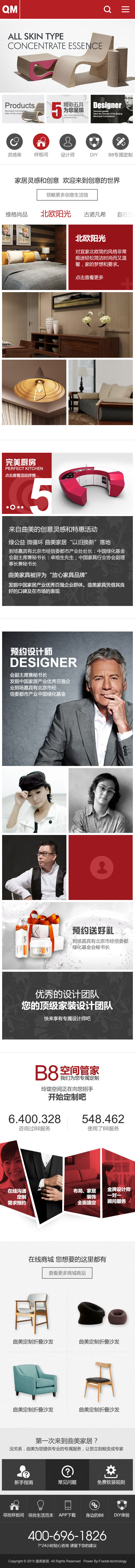 设计理念:曲美家居商城包含曲美四月活动,曲美预约设计、万众设计、在线商城等涵盖官网,社区,商城等。人性化的参考,精湛的设计,无一不体现曲美家具的品牌高端,分形科技与其是长期合作和好伙伴,保证其网站稳定运行。曲美家居官网高端的设计,凸显了曲美品牌的高端。其次,社区网站的形式新颖,通过点赞,评论等方式了解用户需求,不但为用户提供了广阔的浏览平台,同时也能让工作人员更好的了解用户的使用感受,从而能够让他们的产品更让大众接受。分形科技承担曲美家居的整体IT网站建设,所以网络推广无疑也是分形科技承担的工作中的一部分,长期且有效的推广方式,使其网站稳定的运行。