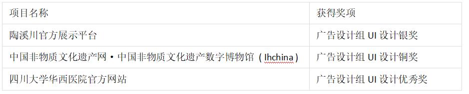 2020年9月8日,第20届IAI国际广告奖新鲜出炉。在备受关注的广告设计组UI设计奖中,由分形科技设计的陶溪川官方展示平台、中国非物质文化遗产网·中国非物质文化遗产数字博物馆(Ihchina)、四川大学华西医院官方网站,3个UI设计作品在一众候选名单中“脱颖而出”,分别获得广告设计组UI设计银奖、广告设计组UI设计铜奖、广告设计组UI设计优秀奖。